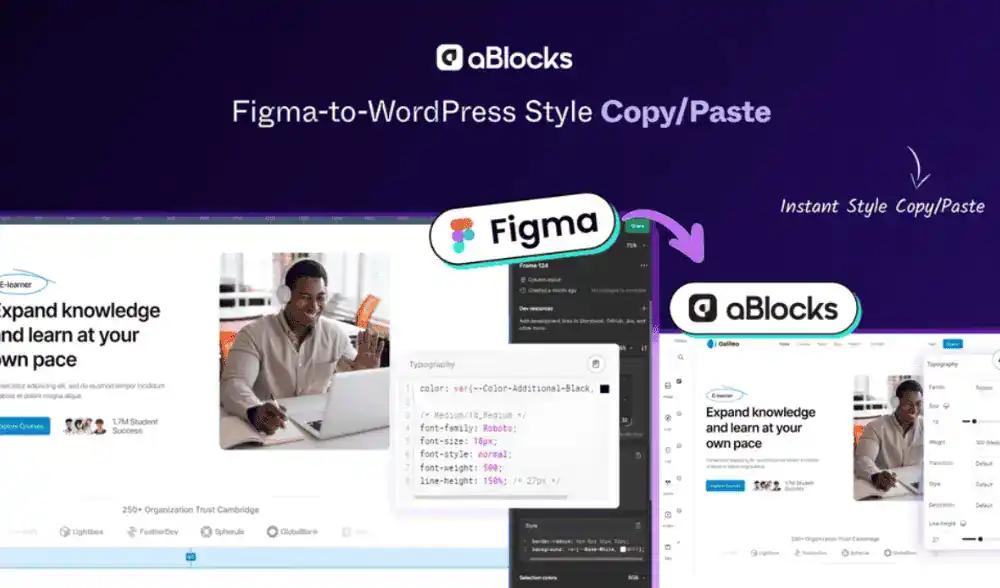 • Seamlessly import Figma styles just by copying and pasting designs directly into your WordPress site