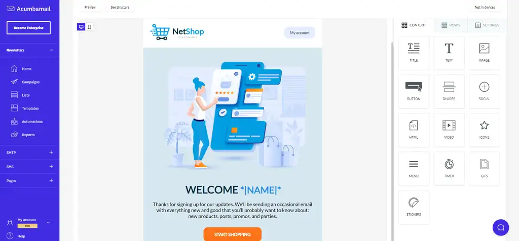 With Acumbamail, you can create professional, content-rich emails with attractive designs and interactive elements that impact your audience and sell your brand.