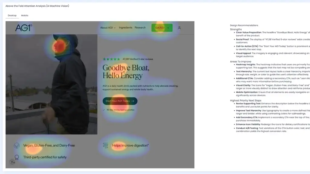 - Get an instant heatmap that reveals high-interest areas on your landing page