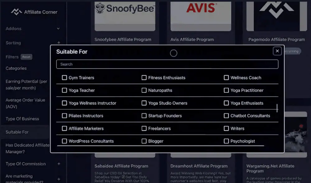 Affiliate Corner is the premier niche finder tool. It combines an extensive database of over 3,600 affiliate programs and 150 niches with powerful data-driven insights.