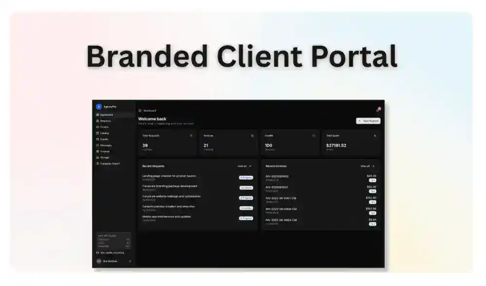 It’s hard to keep track of all your clients, deadlines, and deliverables. AgencyPro lets you manage client messages, invoices, services, notes, and files from one branded platform.