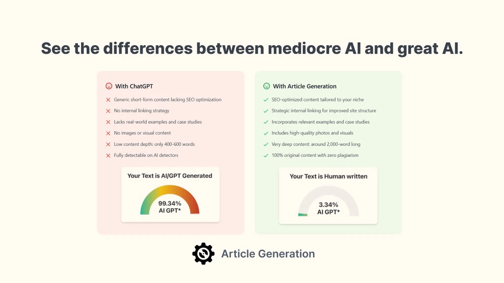 This isn’t your average regurgitated content. Article Generation writes like a human—and beats ChatGPT at its own game.