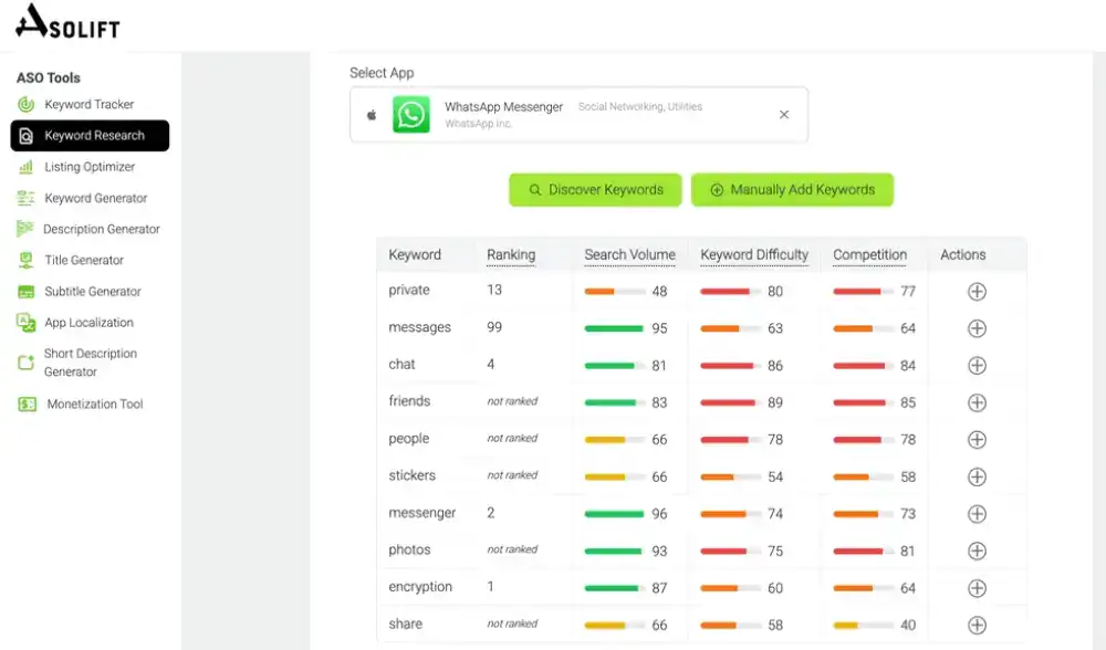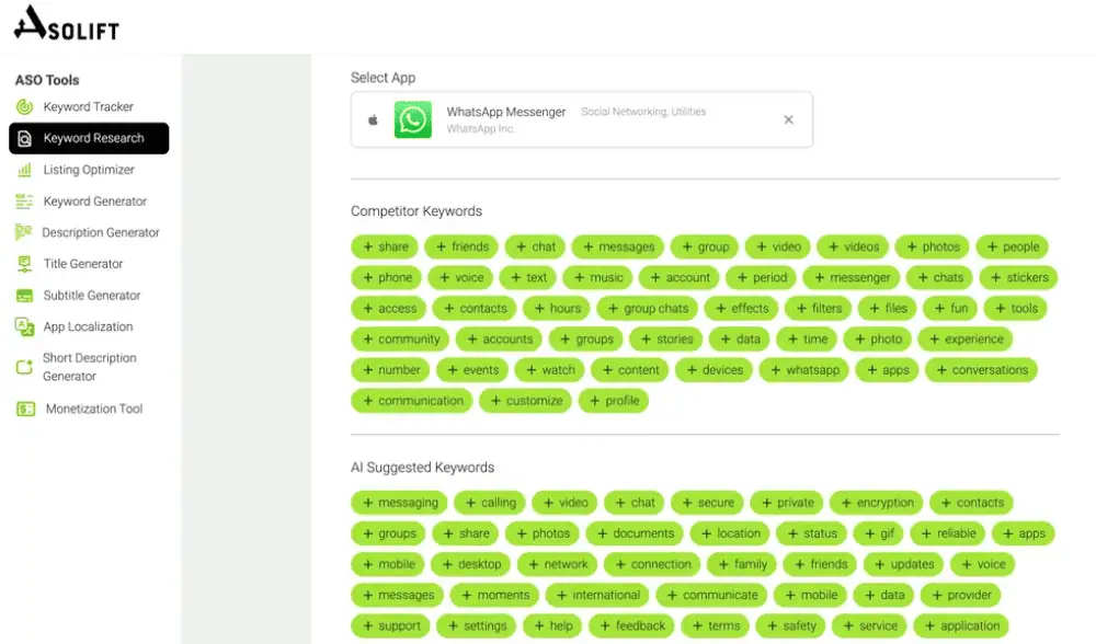AsoLift gives you a full suite of tools to research, track, and improve your app listings with clarity and precision.
