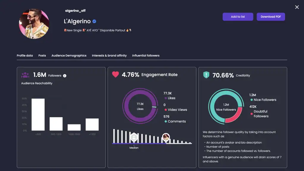 Analyze influencer social profiles – Say goodbye to asking influencers for their profile analytics! It lets you dig into any influencer’s numbers right from the platform.