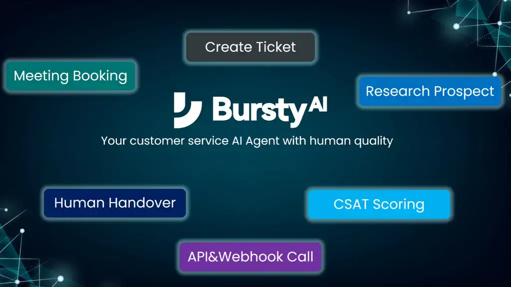 BurstyAI provides AI Agent enhanced Chatbot which delivers human quality customer service, tailored to your unique needs, on your website and other messaging channels.