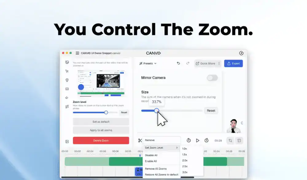 Zoom It In: Automatic or manual zoom that highlights key areas in your recordings. Ideal for presentations, games & educational videos!