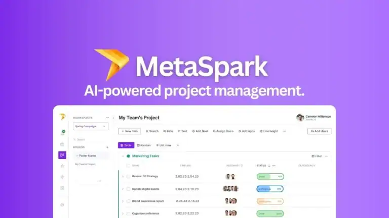 MetaSpark is a project management tool that lets you outsource admin tasks to AI, so you can boost productivity and scale your business.