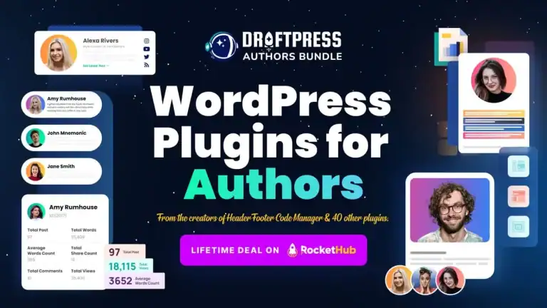 DraftPress Authors Bundle is all-in-one powerful WordPress plugin bundle to easily track author performance, showcase beautiful author profiles, and boost reader engagement.