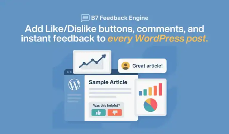 B7 Feedback Engine is a lightweight WordPress plugin that lets you collect Like/ Dislike feedback, comments, and content insights directly on your posts.