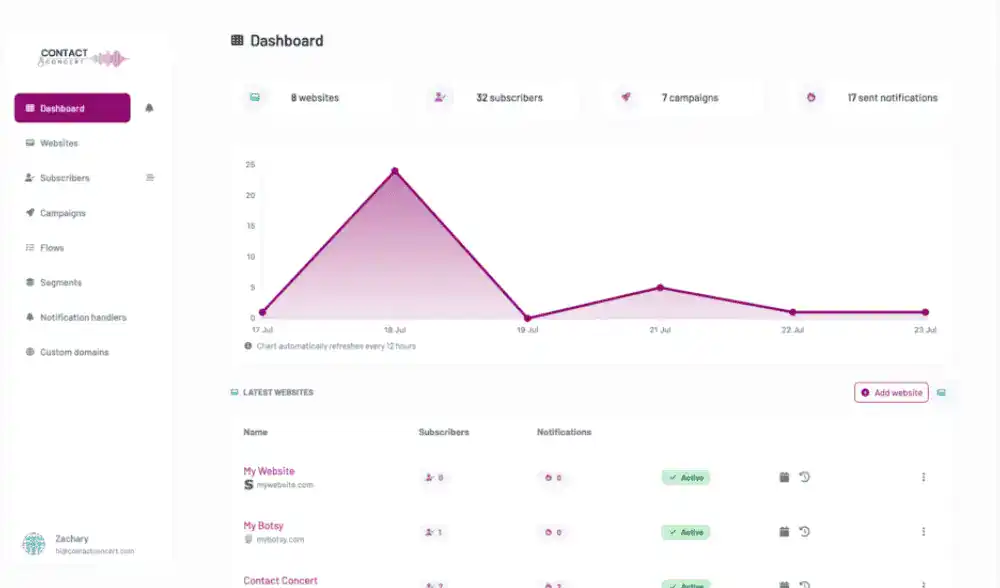 Contact Concert is a sophisticated web push notifications tool that allows you to create and display web push notifications on your website.