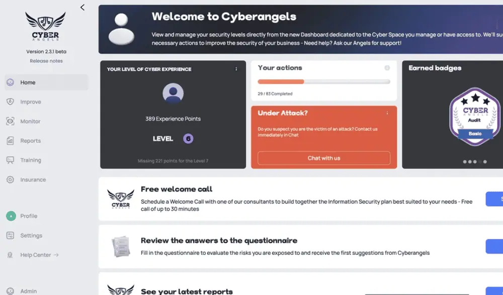 Cyberangels One is an all-in-one cybersecurity and compliance solution that lets SMBs protect their digital assets from threats.