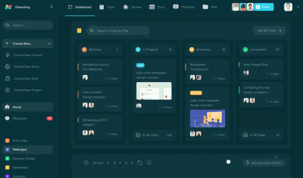 Edworking helps you to keep all of your tasks, files, video calls, chats, documents, and stories in a single place.