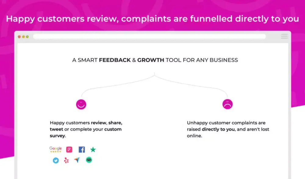 Produce positive reviews and testimonials from your satisfied customers while redirecting any negative consumer feedback to your company