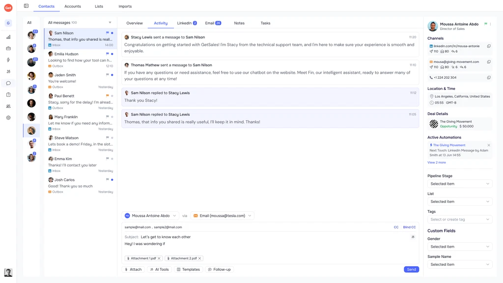 Integrations with Popular CRMs: Sync GetSales with your CRM (like HubSpot, Pipedrive, and more) to streamline your sales workflow and ensure everything is in one place.