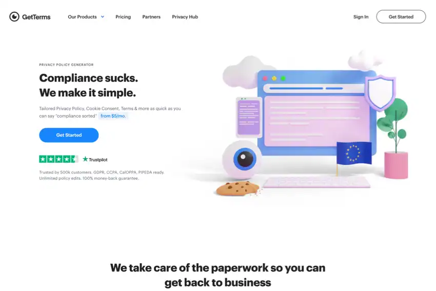 GetTerms is a privacy, terms, and cookie policy generator that lets you create custom, straightforward policies to keep your website and apps fully compliant.