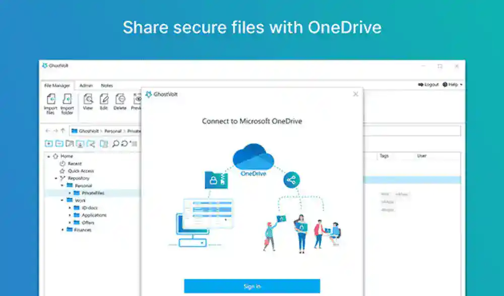 GhostVolt works perfectly with Microsoft OneDrive and allows you to automatically backup and sync your protected files across your computers, you also get an integrated secure note manager, secure file sharing, file comments, tagging and so much more