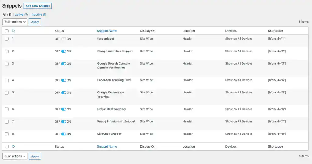 Anywhere On Your Site – Place your snippets in the head, body, footer, on specific posts/pages, or everywhere – you decide!