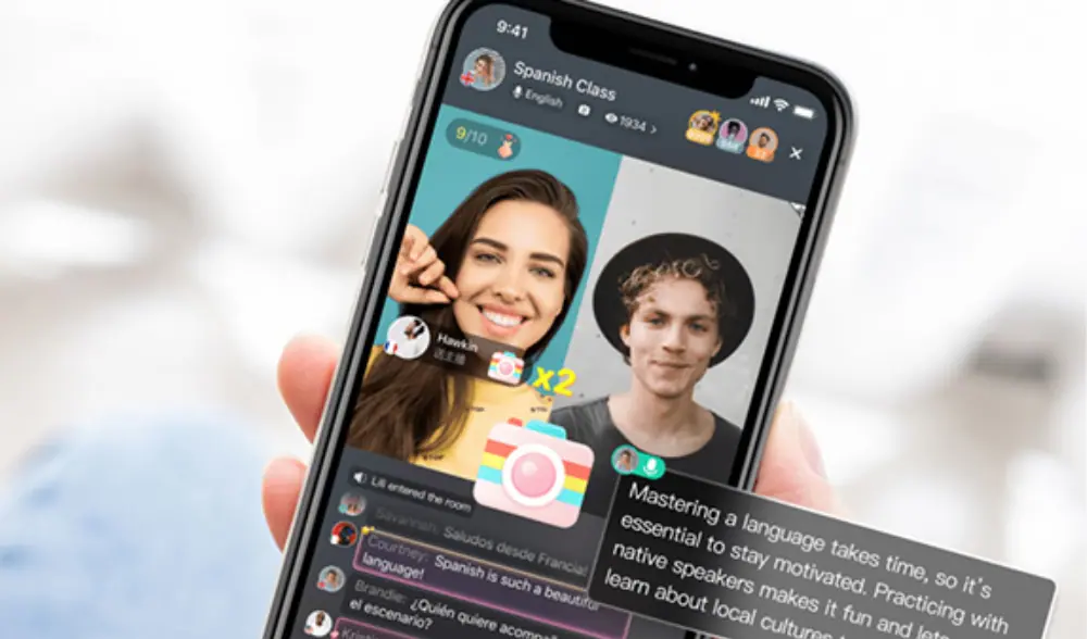 The app offers multiple communication options, including text, voice messages, video calls, and Voicerooms, all while utilizing built-in tools for translation, pronunciation, and corrections.