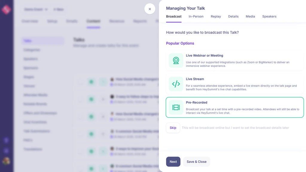 HeySummit makes it easy to host virtual events, so you can focus on delivering value, growing your audience, and getting paid.