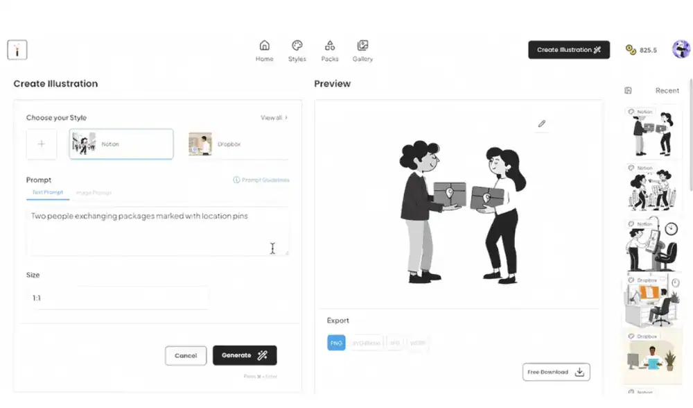 - Access ready-made illustration packs for specific use cases, like travel or marketing