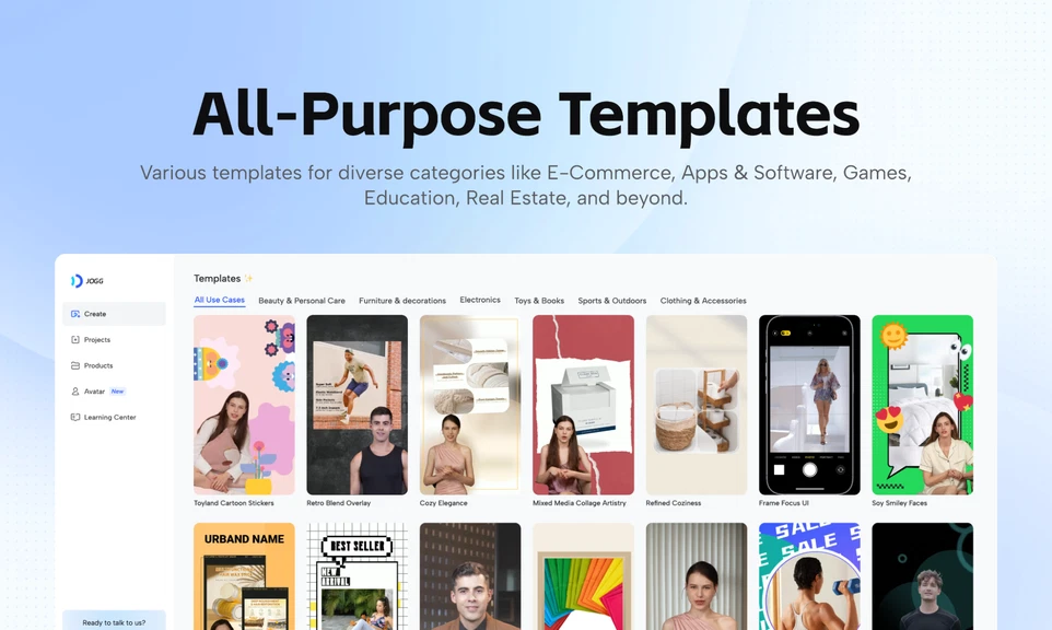 All-Purpose Templates: Use versatile templates to create stunning videos that resonate with your audience and increase brand visibility.