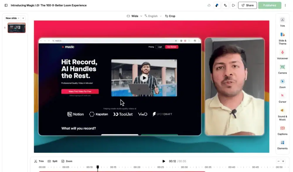 Whether you’re an creator/educator creating online courses or tutorials, a marketer showcasing product demos, a sales guy recording personalised video sales pitch, a SaaS founder creating product videos, a support team member creating product tutorials or walkthroughs, or a YouTube creator, Mazic aims to make your life easier.