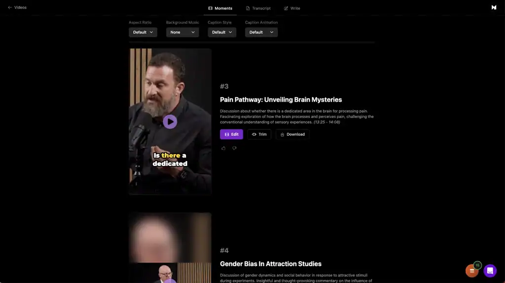 - Identify key moments in long-form videos and automatically create social media-ready clips