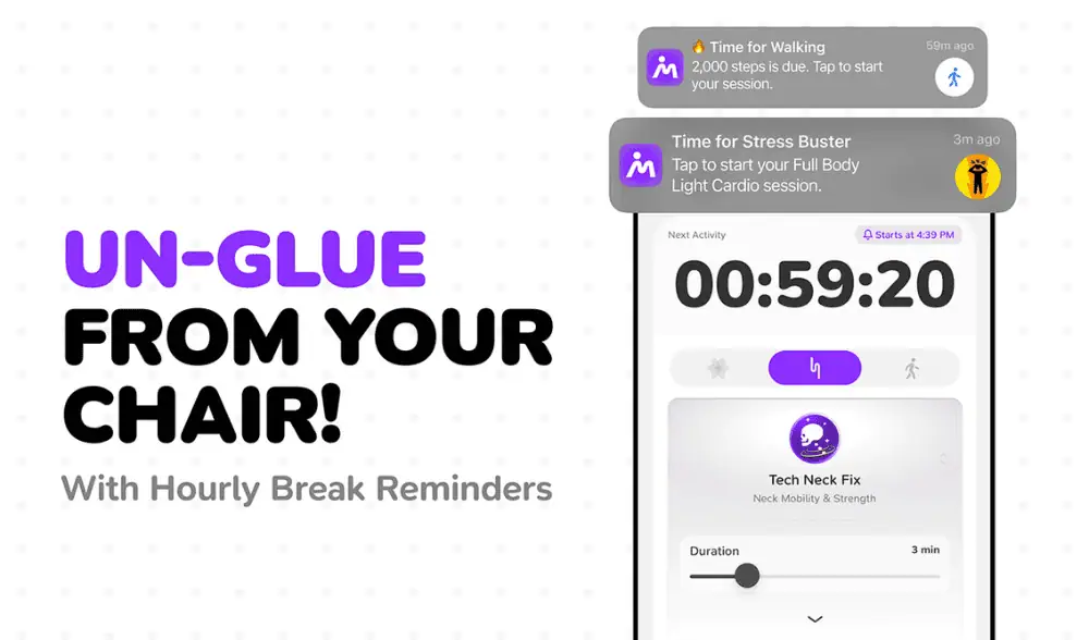 Break free from the dangers of sitting with just 3-5 minutes of science-backed movement breaks throughout your day.