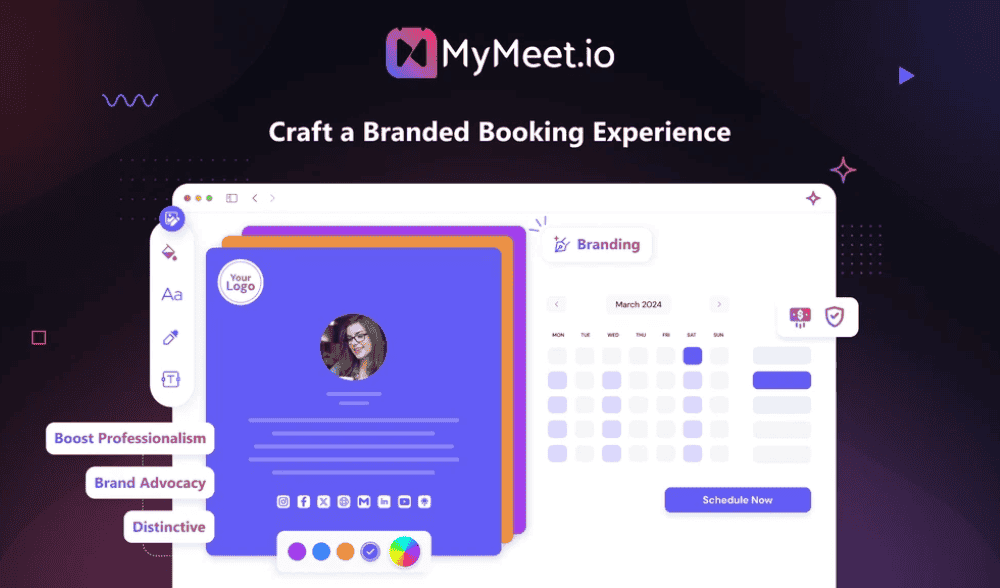 MyMeet.io lets you customize your booking page with your brand logo, colors, and profile picture to boost confidence in your business.