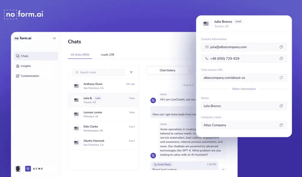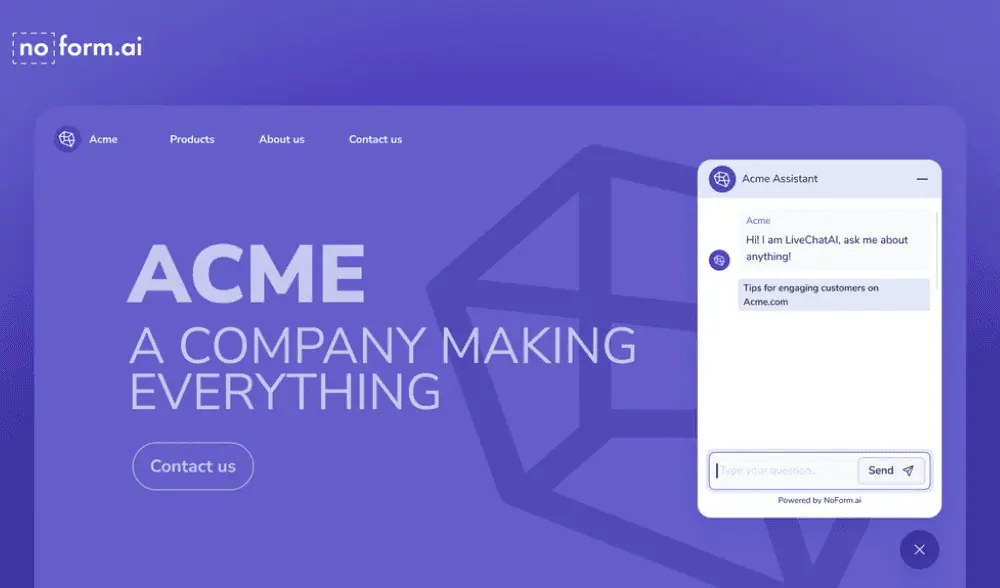 Engage, qualify, capture – turn visitors into leads 24/7 with NoForm’s AI chatbot.