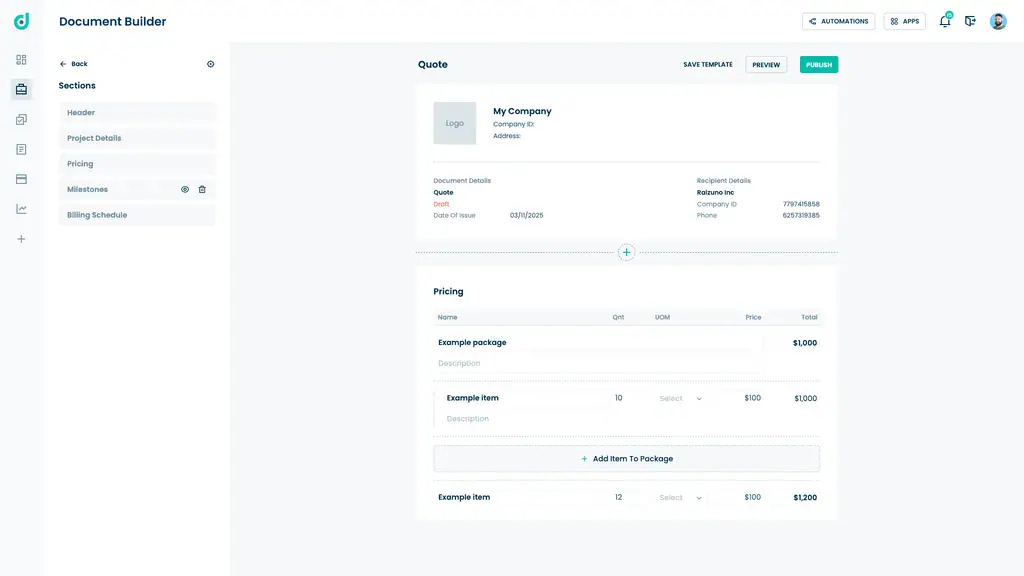 OneDeck comes with a drag-and-drop document builder that lets you design professional documents that reflect your brand’s vibe.