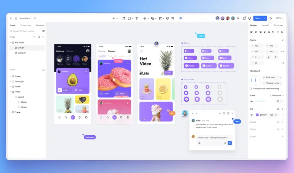 Pixso integrates UI/UX design, digital whiteboards, and AI elements to help your team collaborate on prototypes and products.
