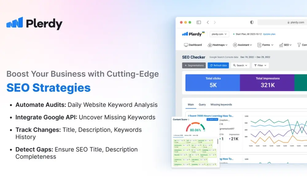 Plerdy is a multifunctional tool that offers heatmaps, session recording, click tracking, and more to analyze user behavior and improve site design.