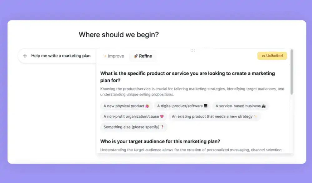 - Add extra context by answering follow-up contextual questions to elaborate on your large language model