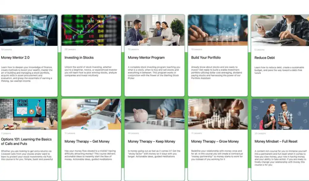 - Monitor completed lessons and financial milestones