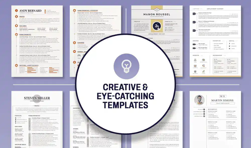 - Creative Resumes: Feature eye-catching designs & layouts that will capture the attention of potential employers