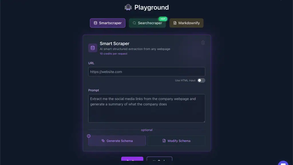 With ScrapeGraphAI, you can extract structured data from any website—just enter the URL and a simple text prompt to get started.