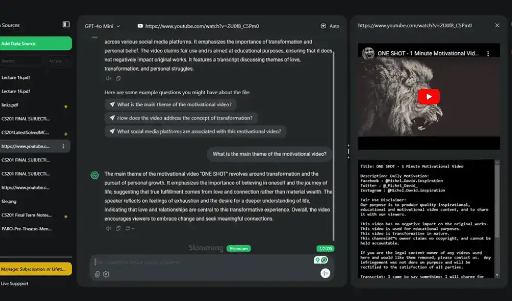 Skimming AI is your new shortcut for summarizing and extracting info from any text, video, image, or audio file.