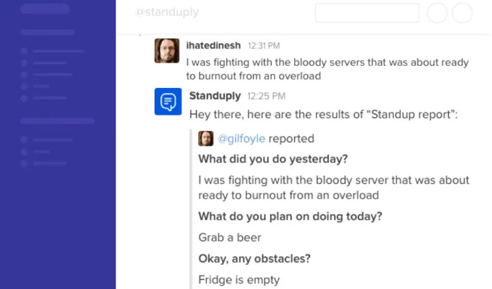 Standuply is the ultimate Slack/MS Teams app any team should have in place. It automates management processes, helps with saving time, and allows flexibility for remote teams.