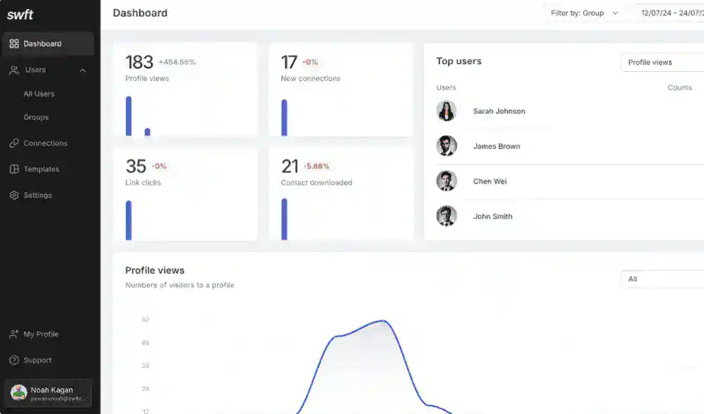 Say goodbye to paper cards. Swft Connect transforms every interaction into opportunity—design branded digital cards and share them via links, QR codes, or NFC for seamless contact exchange and lead capture.