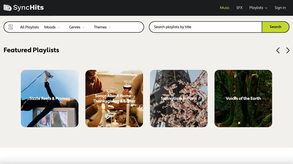 Not sure what you’re looking for? That’s why SyncHits lets you browse themed playlists based on mood and genre.