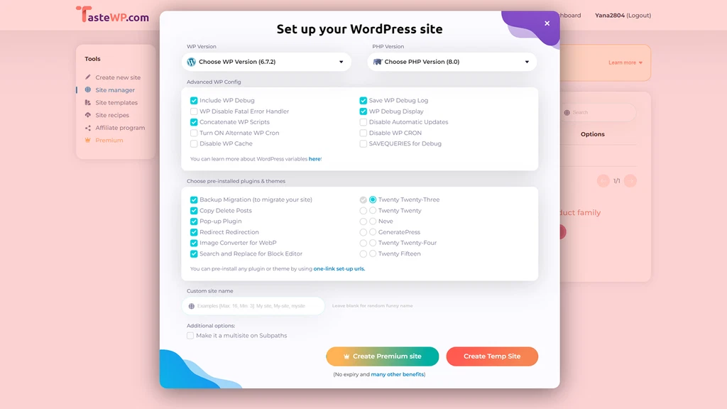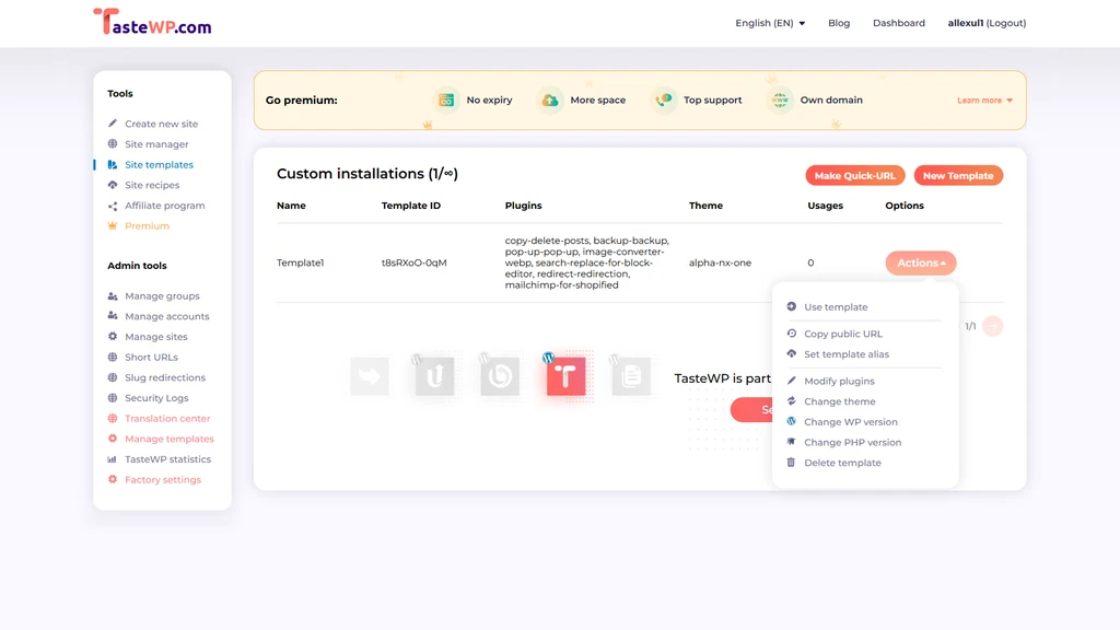 TasteWP is a platform that lets you create WordPress sites for experimentation, development, showcasing, or permanent hosting.