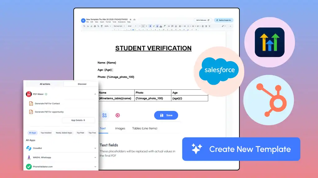 The PDF Maker comes with a robust API that lets you automate document creation with data from the tools you already use.
