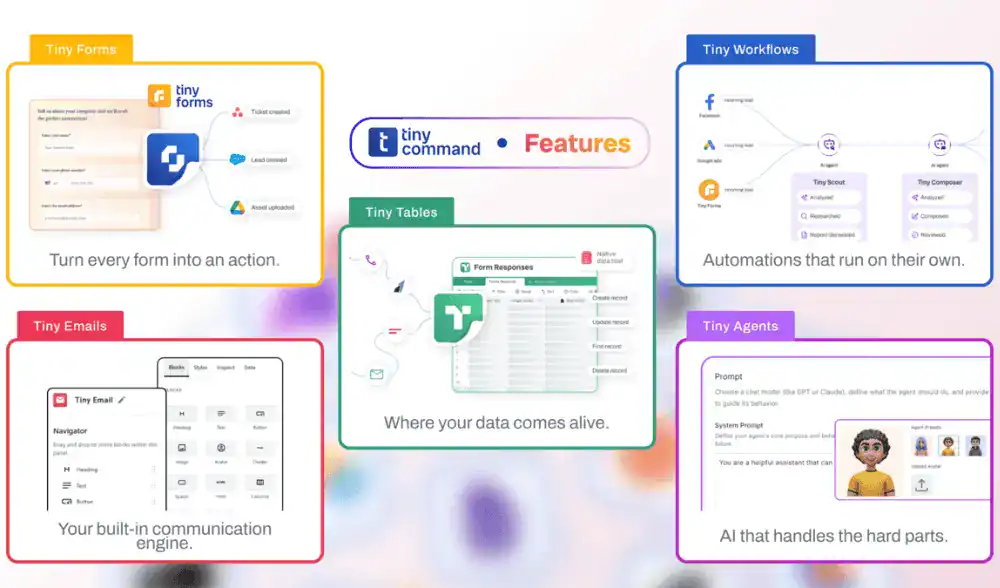 TinyCommand is the all-in-one workspace where your forms, workflows & data live together. Build a form, automate what happens next, & store everything seamlessly.