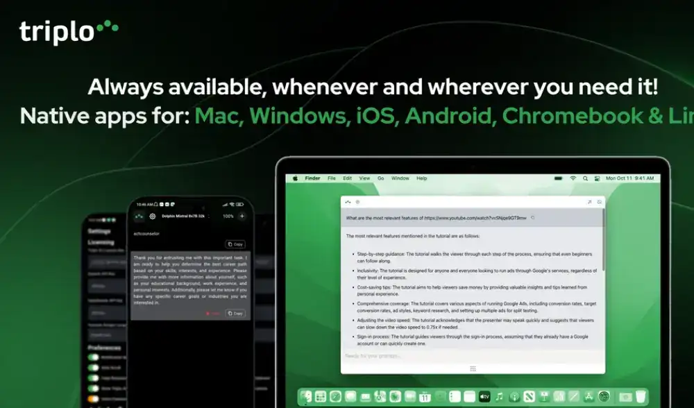 Triplo AI is an AI assistant that can streamline daily tasks and boost productivity on your desktop and mobile devices.
