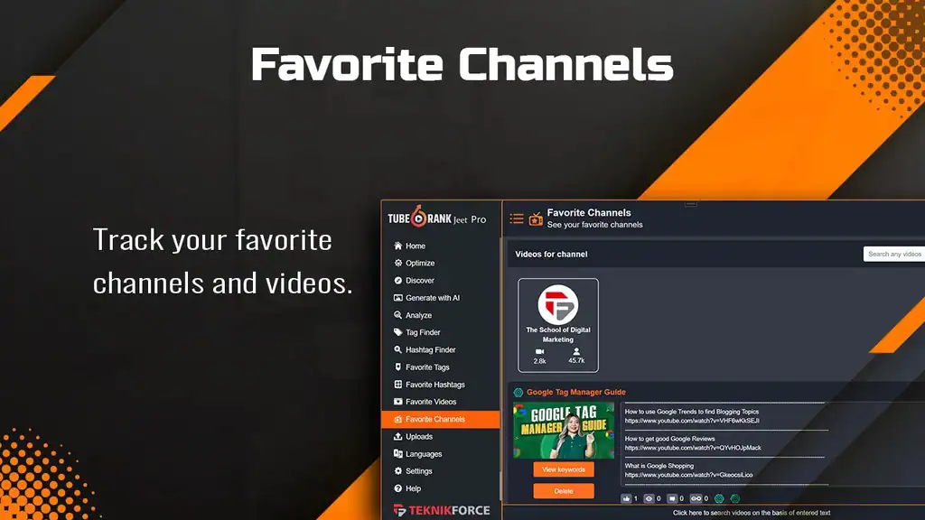 It also offers hashtag recommendations and a proven AI-powered algorithm that delivers a ranking recipe. Users can keep a record of frequently referred channels, videos, tags, and hashtags for easy access later.