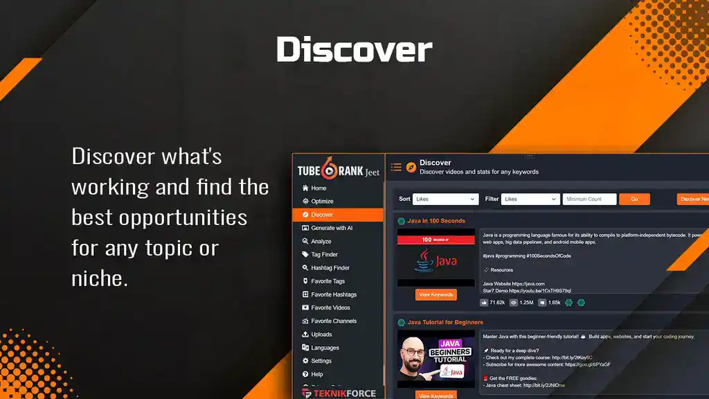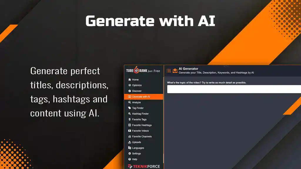TubeRank Jeet 6 AI, is a product from Teknikforce (https://teknikforce.com/), is a cutting-edge software solution that empowers content creators and marketers by boosting their YouTube video rankings.