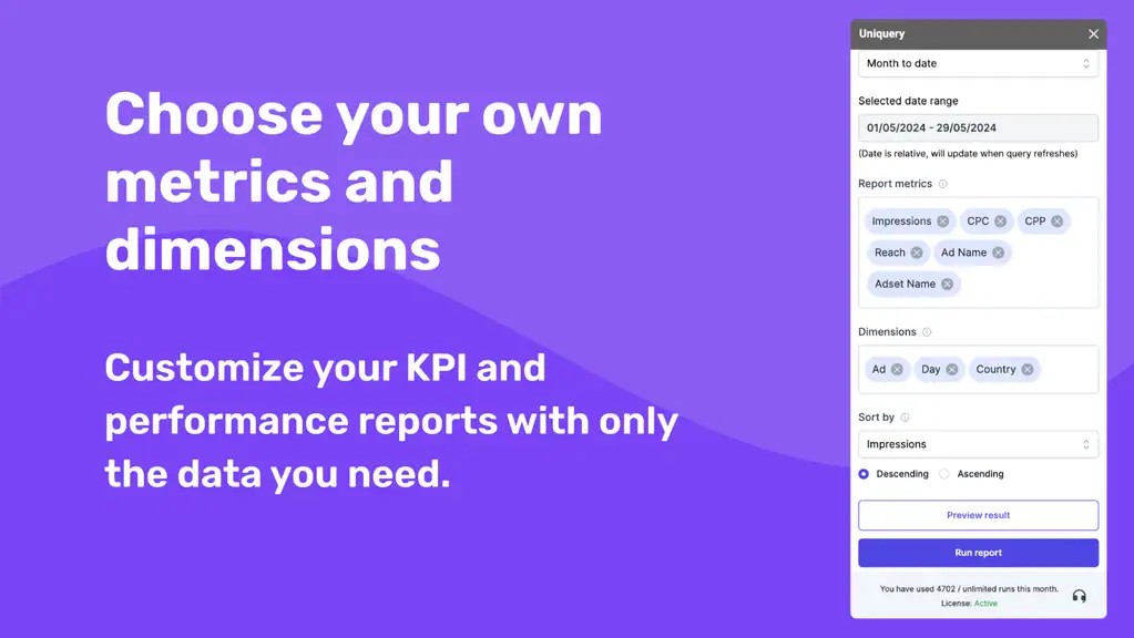 In just a few clicks, you can customize KPI and performance reports based on the metrics and dimensions that matter most to your business.