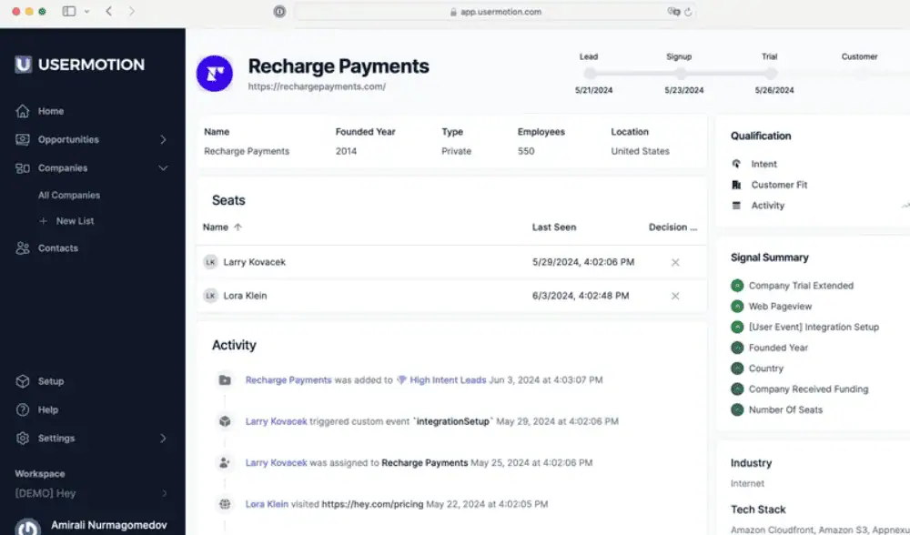 UserMotion is the ultimate sales intelligence platform that helps B2B SaaS companies discover sales opportunities, increase efficiency, and reduce churn.