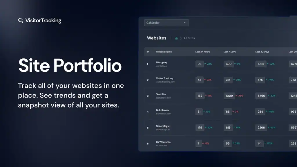 Discover your websites’ performance at a glance! It’s like your own personal website portfolio tracker! Here with Visitor Tracking.
